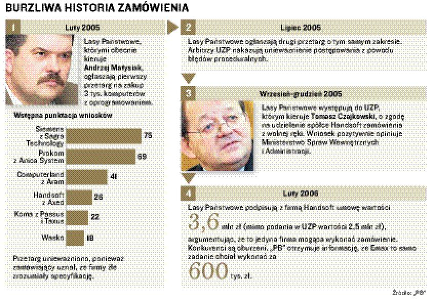 Wzbudzało to wiele wątpliwości kilku konkurencyjnych firm informatycznych. Obawiały się one, że umowa z Handsoftem to wstęp do zakupu „wybranego” przez Lasy sprzętu bez uczciwego przetargu, i twierdziły, że zakup usługi przeniesienia oprogramowania na sprzęt, który dopiero zostanie kupiony, jest bez sensu.