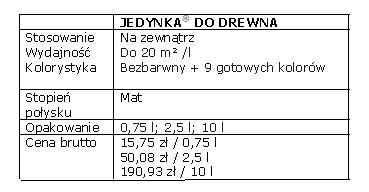 Od maja b.r. JEDYNKA® DO DREWNA oferowana jest w nowym opakowaniu − puszkach w kolorze brązowym, z widoczny rysunkiem drewna, dzięki czemu nie ma wątpliwości do jakich powierzchni jest przeznaczona. Istotna zmiana dotyczy również opisu produktu, który został skrócony do najpotrzebniejszych, praktycznych informacji i czytelnych piktogramów. Na uwagę zasługuje również bardzo korzystna cena produktu, którego opakowanie w wielkości 0,75 l oferowane jest już za ok. 15 zł.